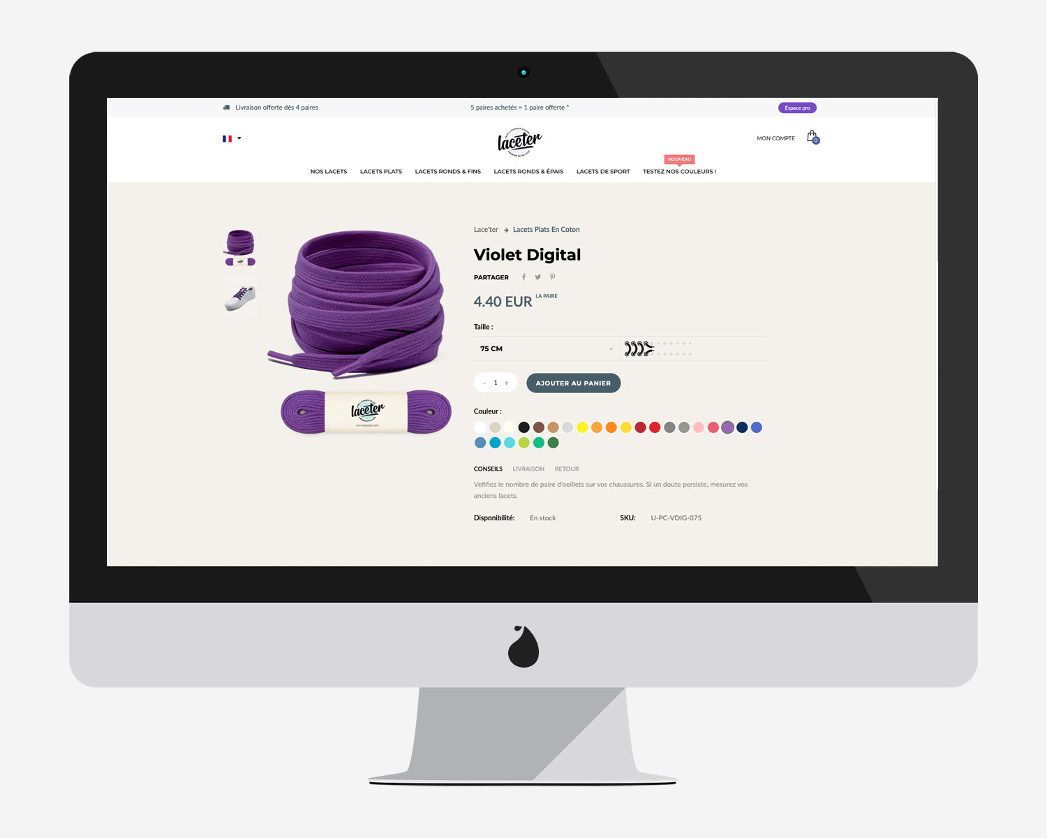 Création d’un site e-commerce dédié aux lacets de chaussures, alliant design moderne et fonctionnalité. Le site propose une navigation intuitive, mettant en avant une large gamme de produits. L’expérience utilisateur est optimisée pour faciliter l’achat, avec un design qui reflète la diversité et l’originalité des lacets proposés.